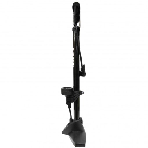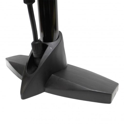 Bombín de pie con acumulador y manómetro, ideal para neumáticos de bicicletas y balones.