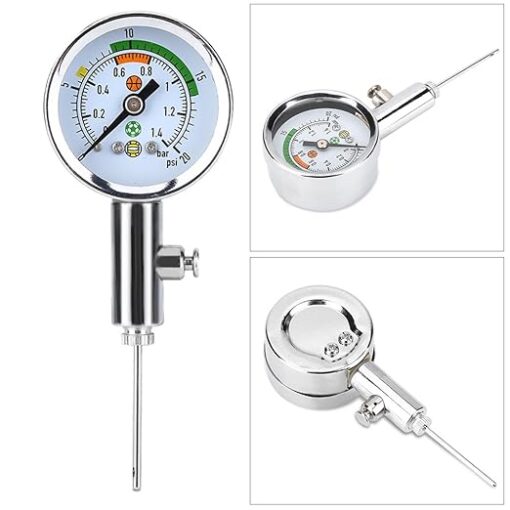 • Es fácil de usar y leer ya que los números y las líneas están claramente impresos, una aguja de inflado general hace que sea fácil insertar varias válvulas de bola y es capaz de mostrar una presión precisa de la bola que inflaste y evitar el desinflado.